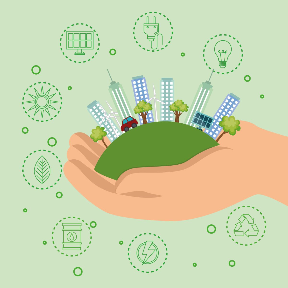 Para que eso ocurra, se deben tomar medidas relacionadas a la gestión de residuos, el uso y suministro de energía, la construcción y la conservación de espacios verdes. Como parte de esos cambios, se debe contemplar las energías renovables y la reducción de la contaminación del aire y el agua.