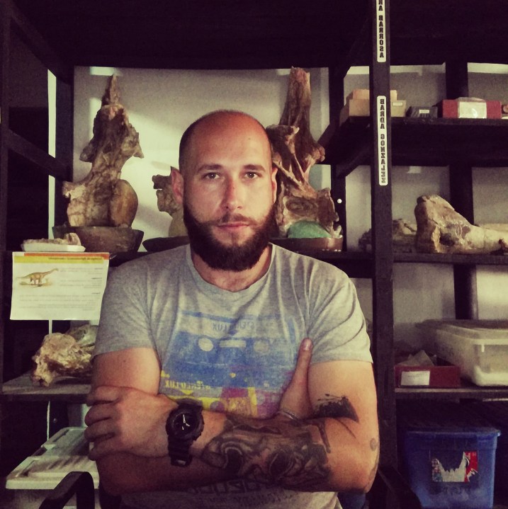 El italiano Mattia Antonio Baiano es licenciado en Ciencias Naturales y becario posdoctoral del IIPG. Llegó a Roca, provincia de Río Negro, en marzo de 2015 por su interés en fósiles de dinosaurios.