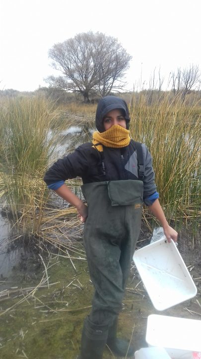 La cubana Yeny Labaut Betancourt trabaja en Limnología, que hace referencia al estudio de los ecosistemas acuáticos a partir de las interacciones de los organismos que habitan esos lugares. Es becaria posdoctoral y se focaliza en cómo los microorganismos presentes en los sedimentos de los cursos hídricos habrían permitido la preservación de huellas fósiles. En su país natal trabajó en el Centro de Estudios Ambientales de la Habana hasta 2016, cuando por medio de una beca doctoral de Conicet llegó al país para seguir su especialización.