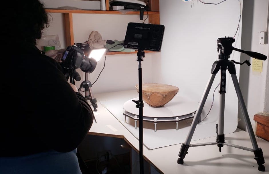 Con los fondos, se armó un laboratorio para registros digitales y se montó una plataforma giratoria que se sincroniza con una cámara infrarroja que saca fotos al objeto mientras va girando. Permite, luego, reconstruirlo digitalmente en tres dimensiones. Esa información se suma a la ficha documental de cada objeto.