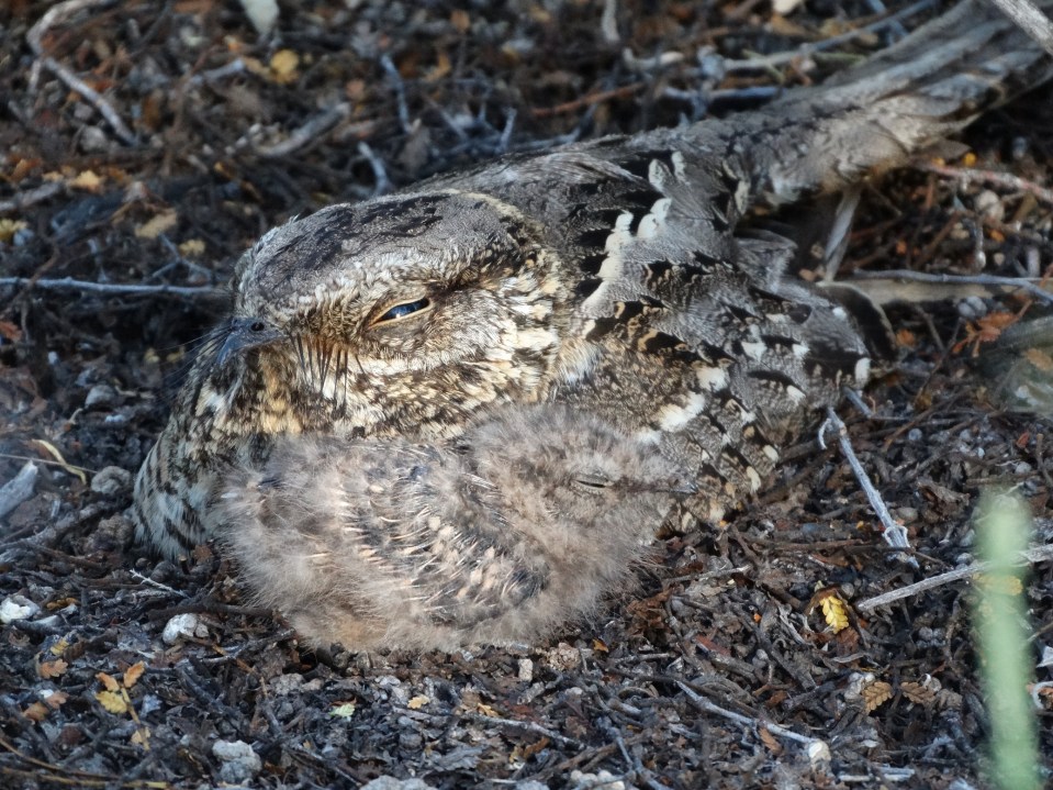 “Un trabajo que me exigió mucha atención de muestreo fue el seguimiento reproductivo del Atajacaminos tijera. Es una especie que pasa increíblemente inadvertida. Durante el día permanece en el suelo o en ramas bajas, estática y sin emitir voces”, dijo. Sus pichones al nacer se desplazan y cada vez más lejos y son difíciles de ver. “El tiempo insumido en cada relevamiento de campo se dilataba enormemente por desplazarme con mucha cautela ante el temor de pisarlos. Por fortuna eso no sucedió”, detalló.