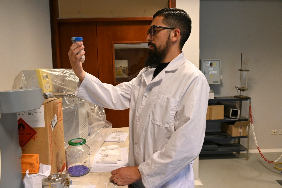 «Los residuos radiactivos de bajo nivel ocupan grandes volúmenes que se deben gestionar. Al ser radiactivos no se pueden gestionar como residuos comunes y hay que aplicarles un tratamiento distinto. Lo que hacemos es preparar residuos radiactivos de bajo nivel simulados, reducir sus volúmenes y caracterizar químicamente el residuo remante que queda», explicó Pullao quien nació en Bariloche y es docente de Físicoquimica en la Universidad Nacional de Río Negro (UNRN).