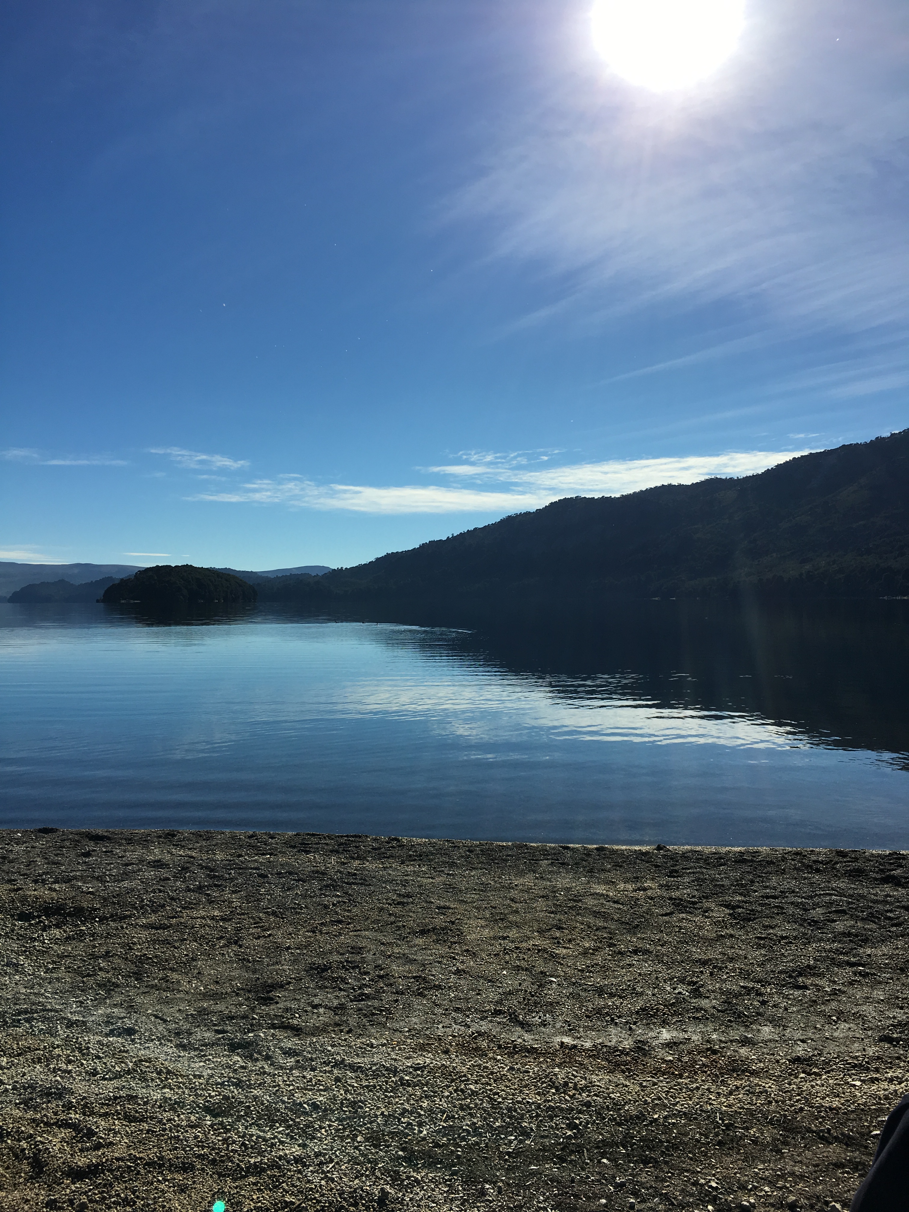 Desafío: desde la playa del camping, sacar una foto al paisaje y lograr que el mismo se refleje como un espejo en la superficie de la laguna. Si invertís la foto, no se deben dar cuenta de cuál es el celeste del cielo y cuál el celeste del agua!