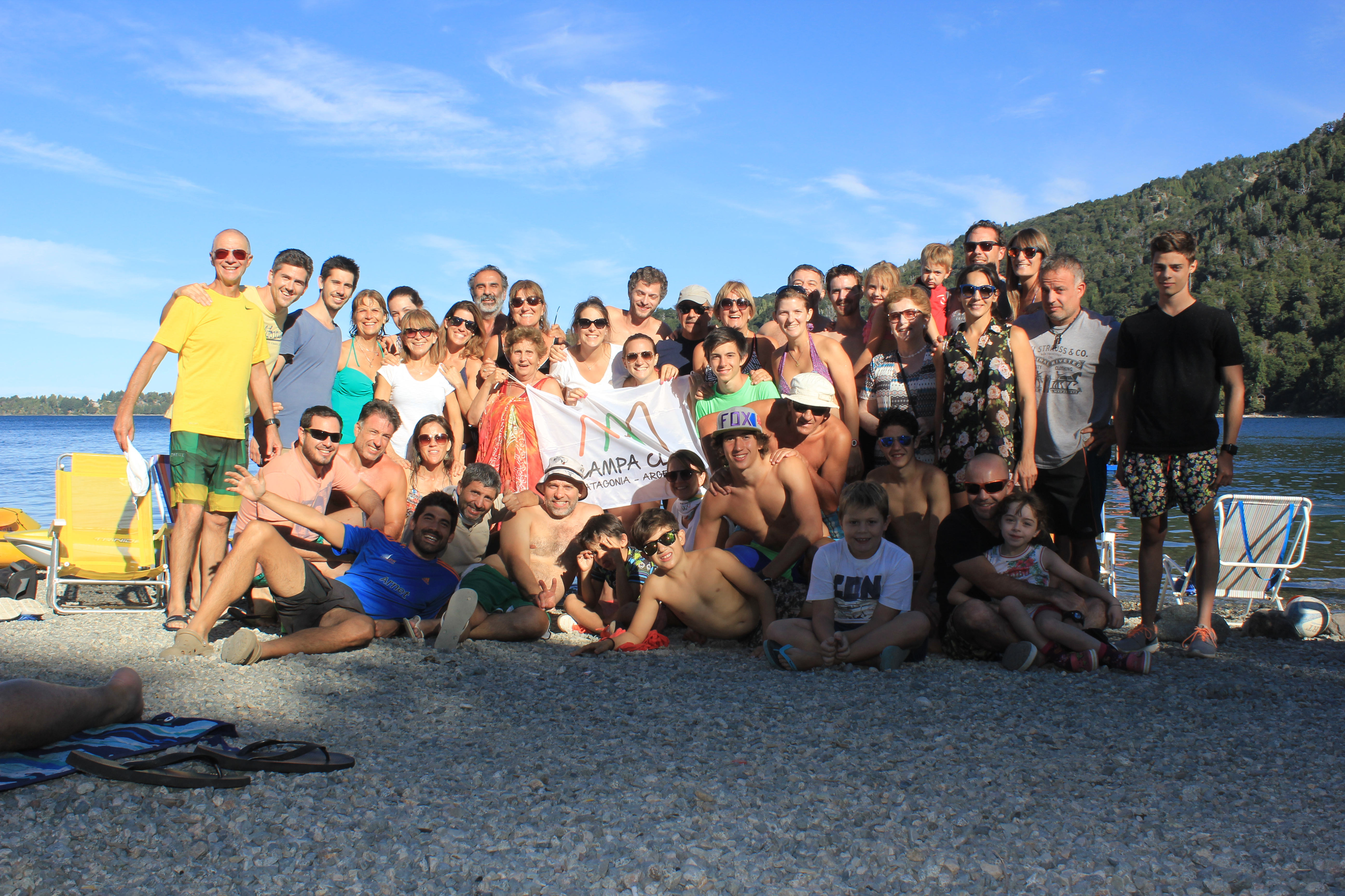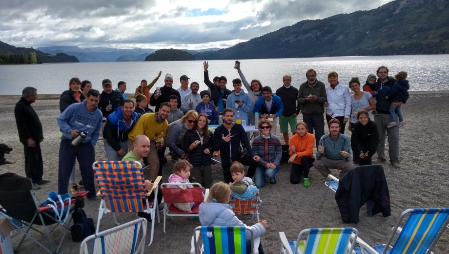 En un predio de descendientes de la Abuela Goye, funciona el camping Huenei Ruca, con muy buenos servicios, sobre el Lago Moreno. La excelente playa nos permitió hacer muchos juegos en equipos, matear bajo el sol y disfrutar el paisaje. Cerca de Colonia Suiza, con buenos accesos, muchos aprovechan para hacer “turismo urbano”. Tiene un comedor de uso compartido, que teníamos a disposición en caso de lluvias fuertes.