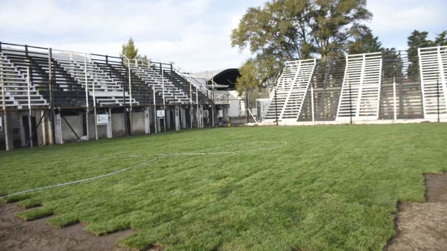Cipolletti comenzó a colocar los panes de césped natural en La Visera