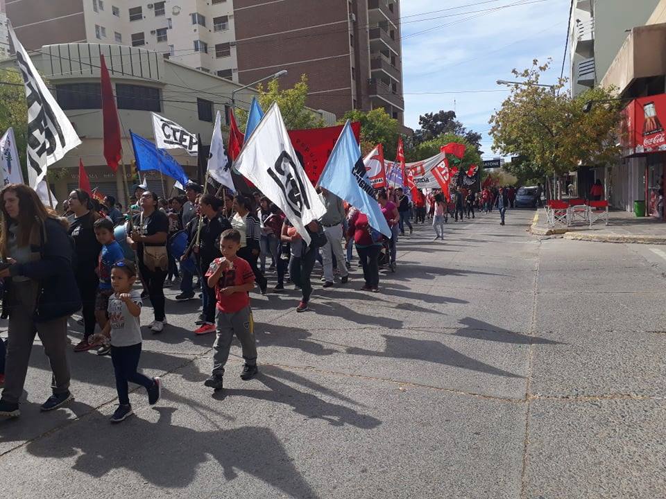 Más de mil personas caminaron por las calles de la ciudad y luego se concentraron en la plaza San Martín, para leer un documento que fue confeccionado por numerosas más de diez organizaciones sociales, sindicatos y autoconvocados.