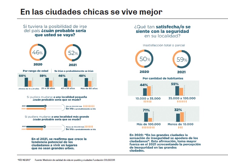 Un dato interesante es que el deseo de emigrar a una ciudad más grande también aumentó fuertemente en los pueblos de menos de 100.000 habitantes, del 30% en 2020 a casi el 50% en este 2021.