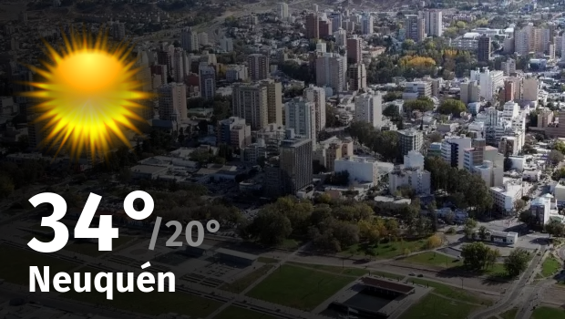 Para esta jornada el pronóstico del tiempo para la ciudad de Neuquén indica cielo claro con una temperatura máxima de 34 °C y una temperatura mínima de 20 °C.
