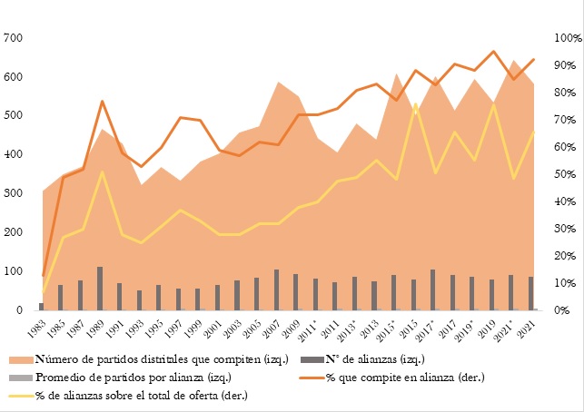 1.- Partidos y coaliciones en elecciones presidenciales 1983-2019