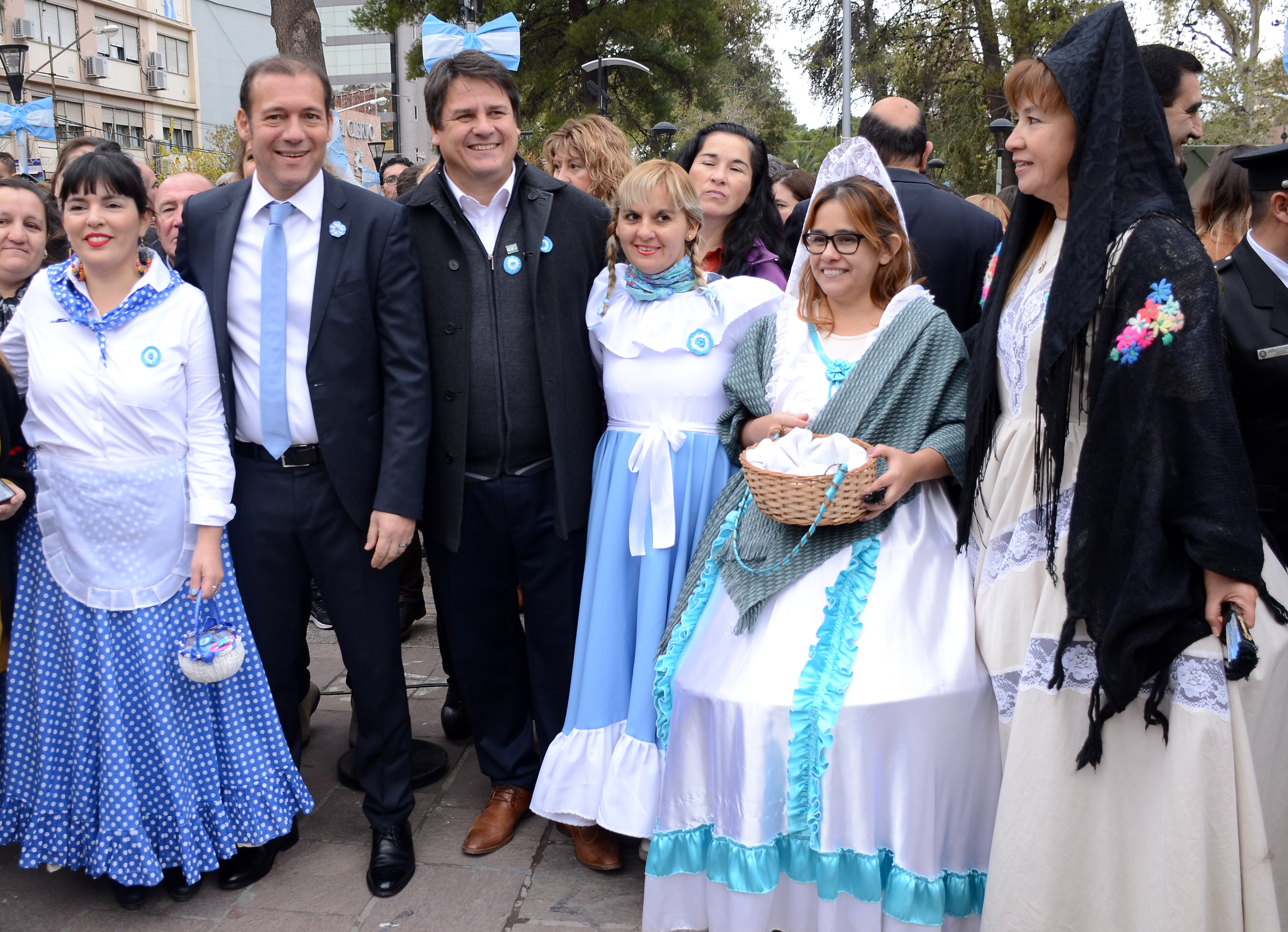 Luego del discurso, el gobernador se sacó fotos con el público, con el candidato a intendente frente al monumento a San Martín, con los bailarines, pero esquivó hablar con la prensa en el lugar.