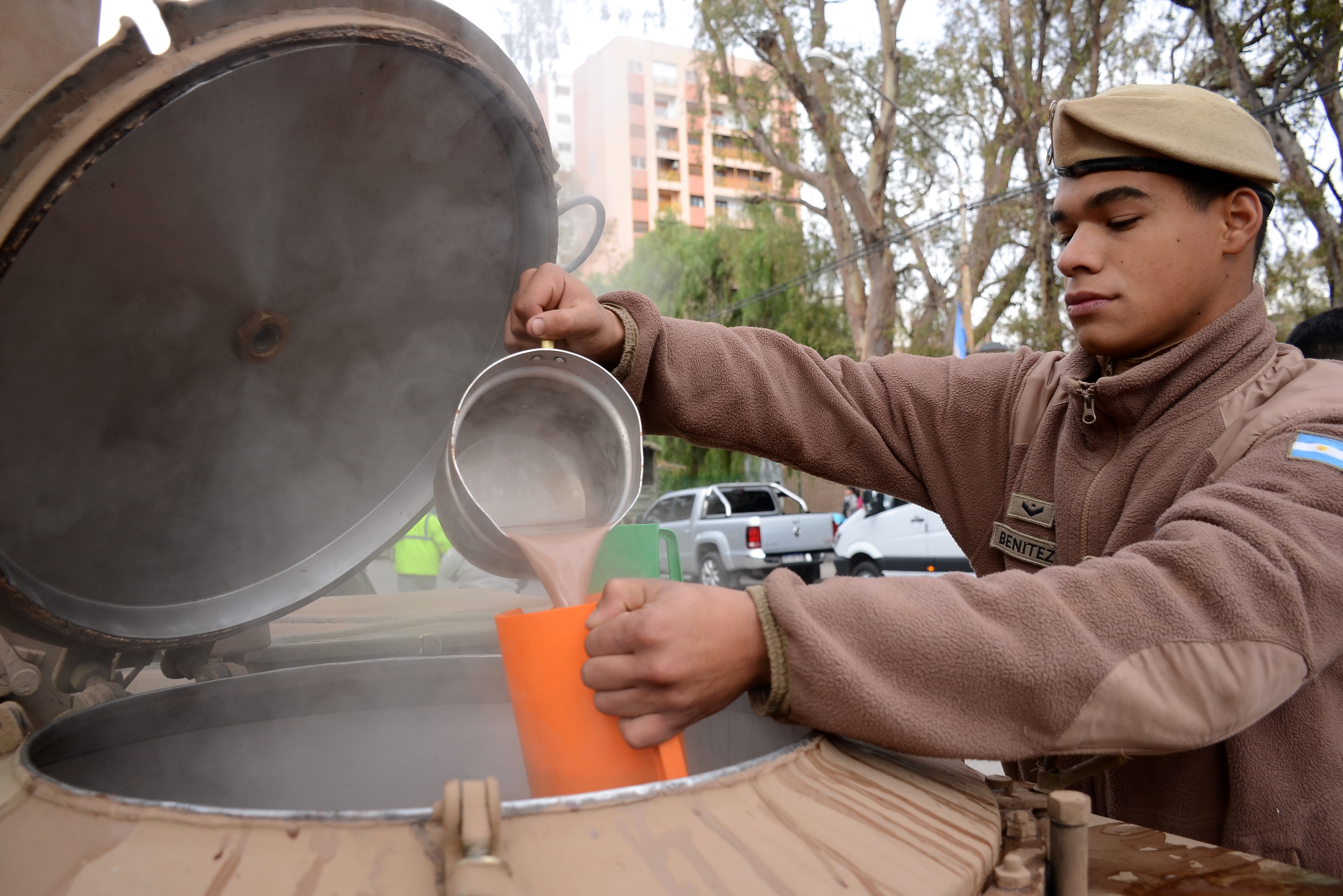 Hubo tradicional chocolate con leche y tortas fritas, aunque muchos de los asistentes llevaron sus propios termos y mates para pasar el frío de la mañana, que atemperó bastante con la salida del sol.