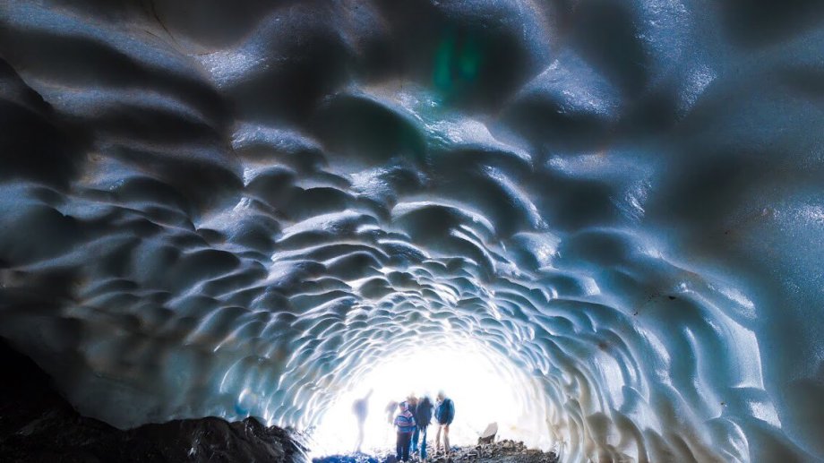 Este fenómeno natural crea senderos tubulares que conforman un laberinto cilíndrico con un cielorraso escamoso y cóncavo con pasadizos conectados por paredes de hielo.