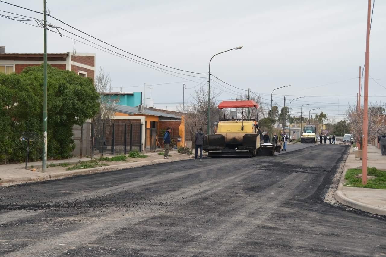 Se avanza en la pavimentación de calles del barrio Gobernador Castello de la capital rionegrina, para permitir el acceso por vías asfaltadas a la Escuela Primaria 355 Maestro Tassara. También sobre la calle Chubut, entre Schieroni y Winter, del barrio Santa Clara, en donde ya finalizaron los trabajos.