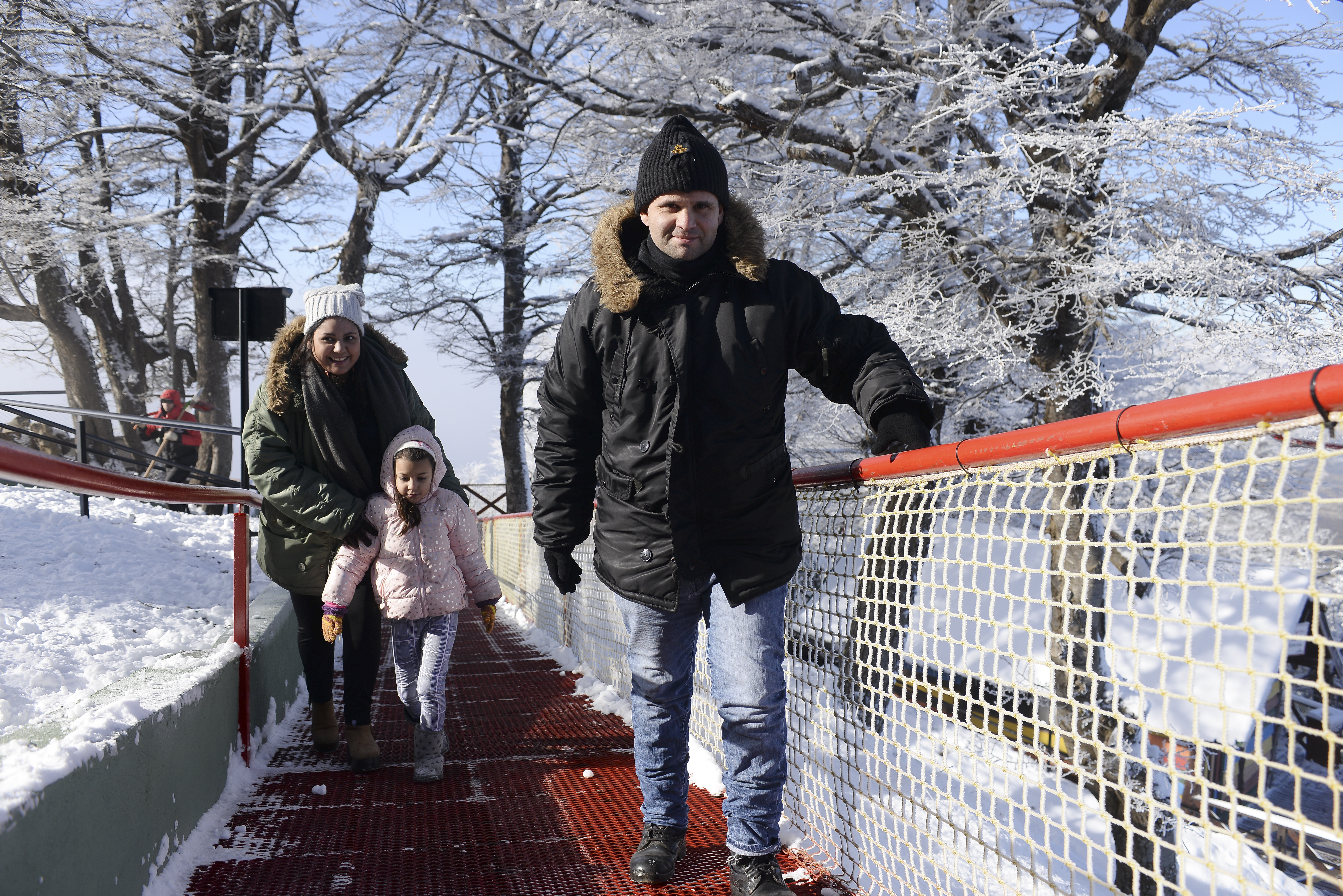 En el cerro Otto, con algo de nieve en la cumbre, se habilitaron las caminatas con raquetas en senderos que atraviesan el bosque. Ayer decenas de turistas y contingentes disfrutaban de este fenómeno, sobretodo un grupo de adultos que llegaron desde Iguazú que se vio sorprendido por encontrar esta nieve anticipada.