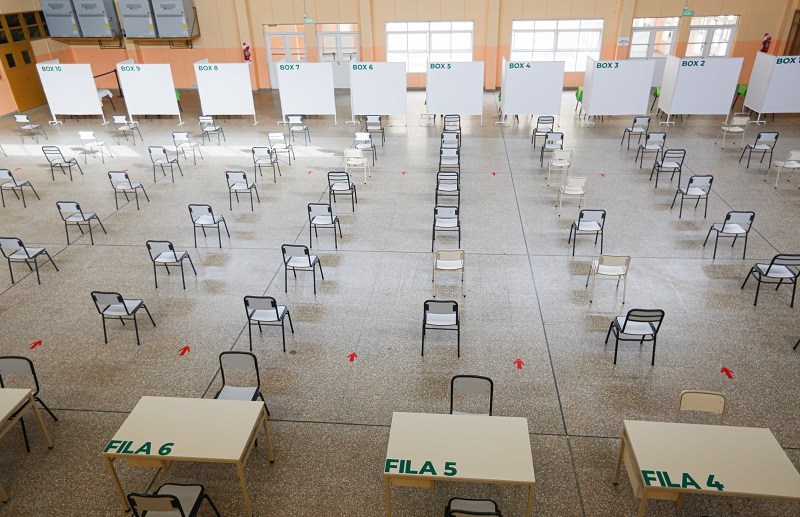 También se montaron 10 boxes para la aplicación de la Sputnik y una puerta especial para salir del colegio.