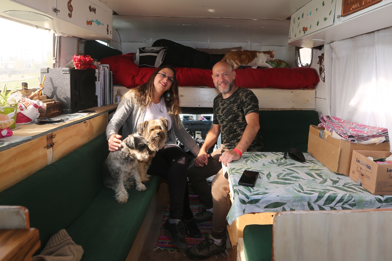 Al comprarlo sabían que necesitaría una puesta a punto grande, así que a eso se dedicaron. Lo desmantelaron para arreglar las filtraciones de humedad, pusieron asientos nuevos, muebles. Iban a sus trabajos, él, en el área de administración de una empresa, ella daba talleres de cerámica; y después al camión. Durante 9 meses trabajaron doble.