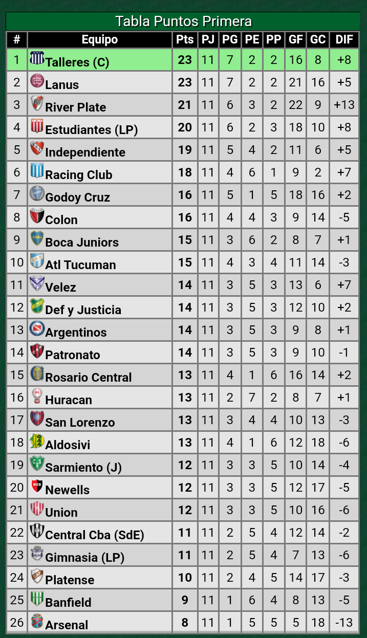 Terminó una nueva fecha de la Liga Profesional. Te dejamos las ubicaciones del certamen argentino.