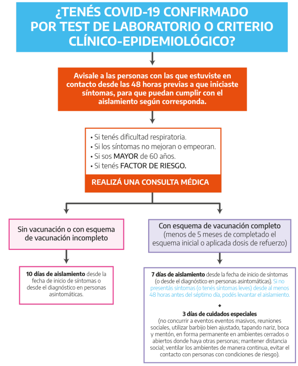 “Estos casos deberán auto reportarse a través de la aplicación Cuidar y mantener el aislamiento durante el periodo especificado en https://www.argentina.gob.ar/salud/coronavirus/medidas-ante-casos-y-contactos según su condición de vacunación”, consigna el documento oficial.