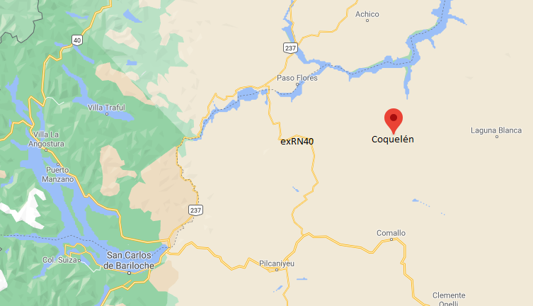 El INAI precisó que Pilquimán procedía del paraje Coquelén que queda en la provincia de Río Negro, en el departamento Pilcaniyeu, pero su vía más directa para llegar a Bariloche es a través de la exruta 40 (1s40) y la nacional 237, en jurisdicción neuquina.
