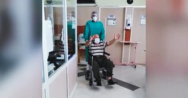 Con 100 años se recuperó de Covid-19 y salió de alta emocionado y aplaudido por médicas y enfermeras