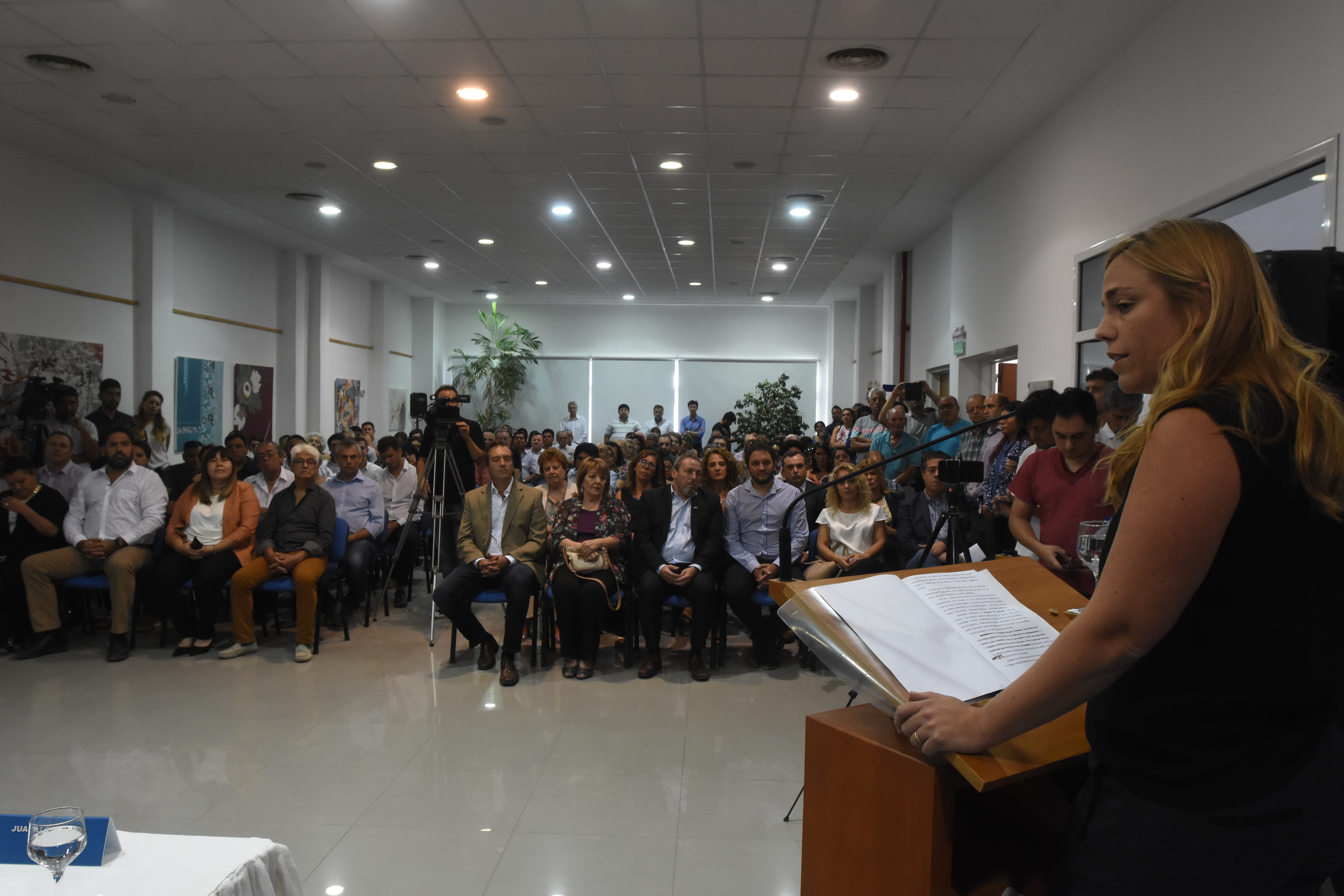 El gabinete de Soria estuvo en la sala, entre ellos la secretaria de Gobierno Mariana Soler y otros funcionarios municipales y nacionales como el diputado Martín Soria.