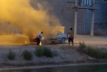 Ayer se vivió un momento dramático en Allen atrás de la ex bodega Millacó, al lado del Canal Grande. Unos vecinos con baldazos de agua y tierra lucharon varios minutos para apagar el incendio del auto en el cual se movilizaban.