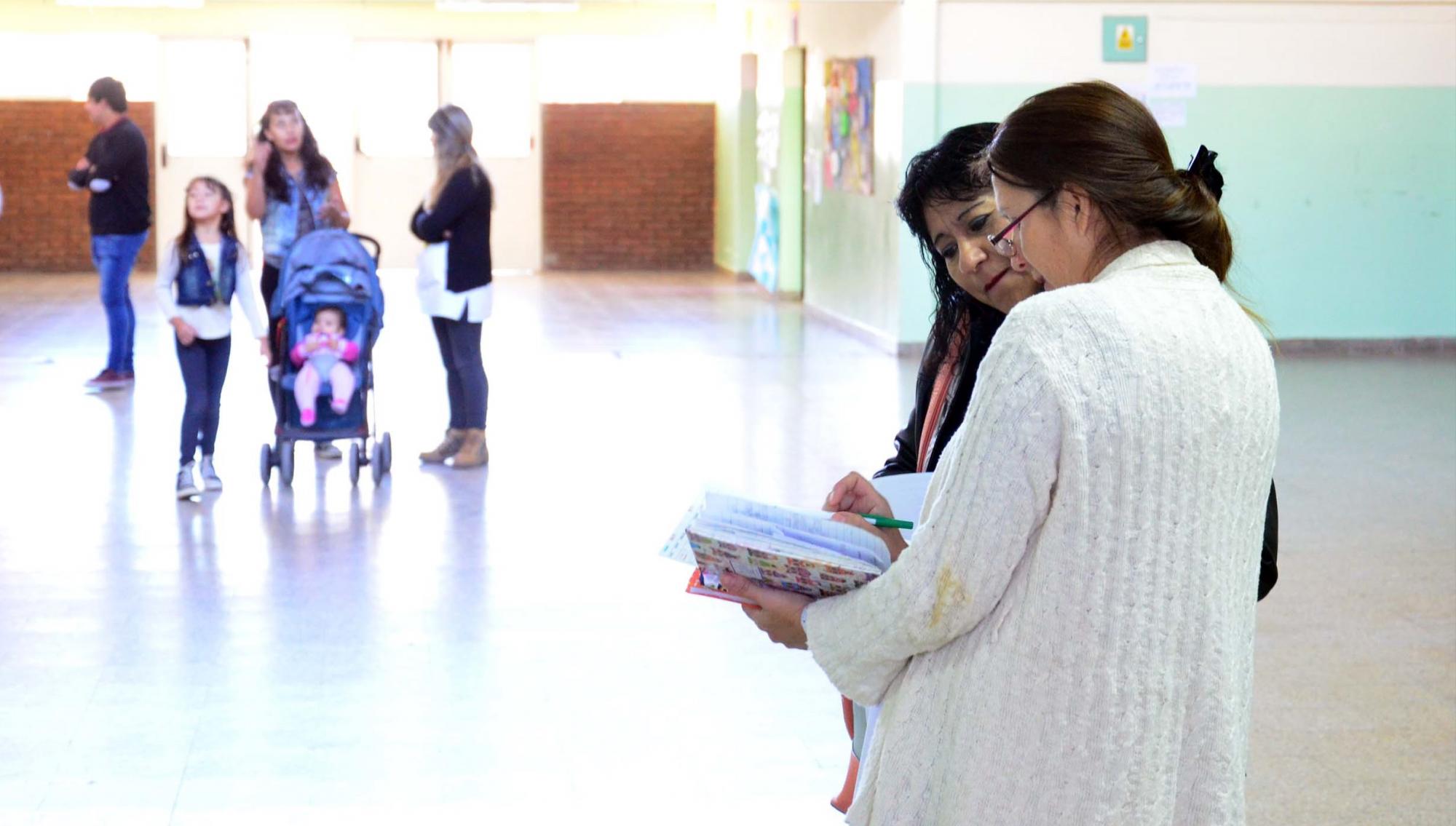 Si bien las clases fueron suspendidas los directivos y docentes mantuvieron la actividad en una especie de formato virtual con el acompañamiento de los padres de los alumnos. Se pudo observar un permanente movimiento de adultos que acompañaron a sus hijos para retirar las planillas de tarea que entregan los docentes o bien a corregir lo realizado. En total son nueve las secciones de la mañana y 10 las de la tarde.
