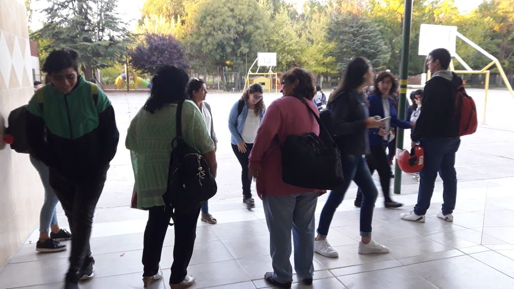 Cerca de las 7.30 de la mañana llegó el primer colectivo con aproximadamente diez alumnos del CEM 9 al colegio San Miguel de Roca.