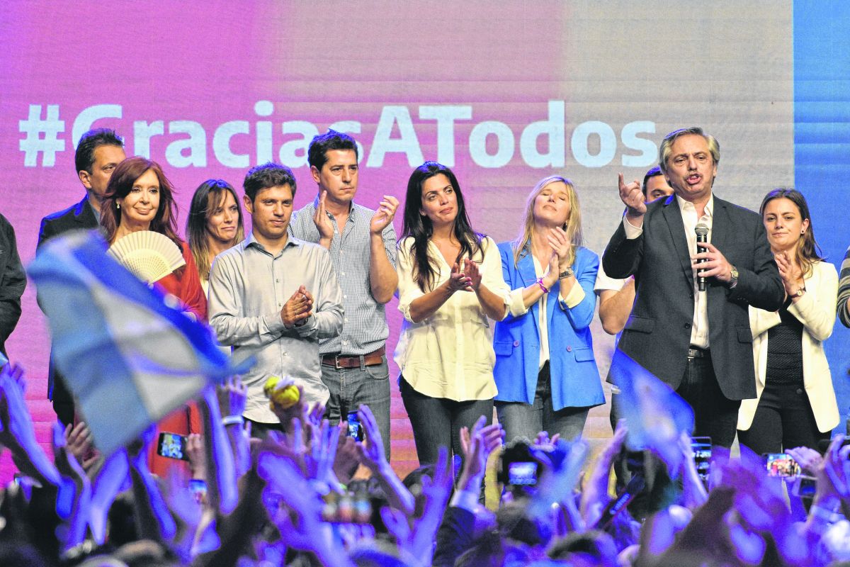 Cerrada las votación a las 18 en el búnker del Frente de Todos, donde se fueron reuniendo poco a poco miles de personas, se desató la euforia. En el del oficialismo, en cambio, reinaba la cautela, con la expectativa y la esperanza aún de llegar al ballotage. La aparición de los primeros números horas más tarde derrumbó esa posibilidad. La fórmula Fernández-Fernández tocó el 48% de los votos. Macri superó el 40%.