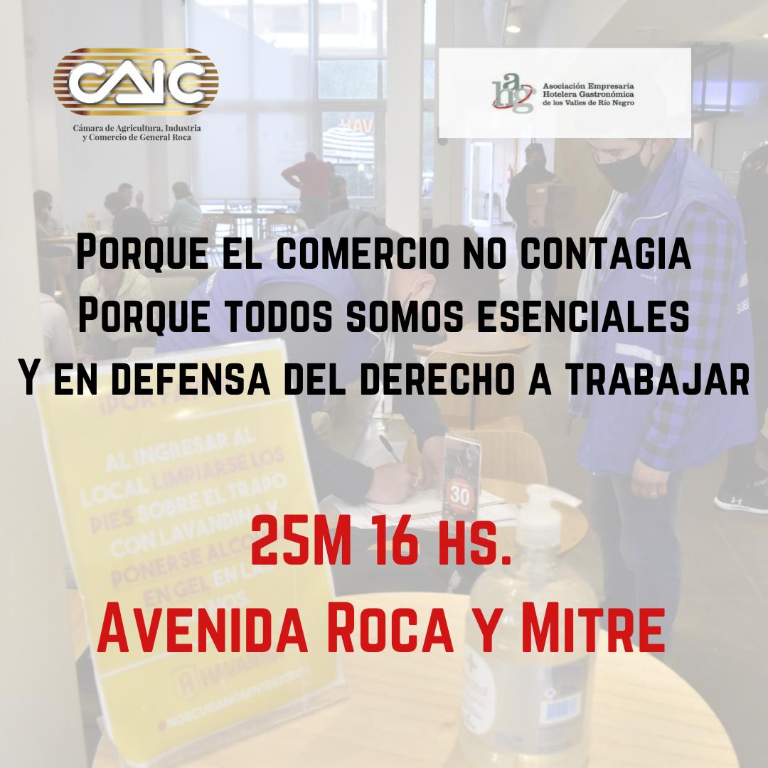 El impacto en la economía producto de las nuevas restricciones por la pandemia movilizó a un importante grupo de comerciantes durante el fin de semana quienes prometieron volver a las calles mañana (martes 25/05), con una contundente protesta que se realizará en la zona céntrica de Roca. Desde la Cámara de Agricultura, Industria y Comercio (CAIC) salieron a cuestionar las medidas y expresaron que «acá existe una total indiferencia, soberbia y desprecio de parte de quienes gobiernan, por aquellos que trabajan y arriesgan todo«.