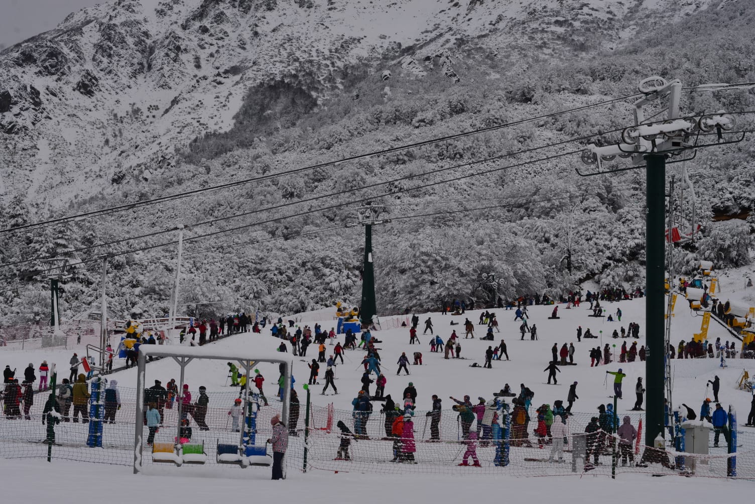 La precipitación de ayer generó gran entusiasmo entre los cientos de visitantes que se volcaron a disfrutar las pistas de principiantes en la base, donde hubo clases de esquí y de snowboard y muchos chicos con trineos. Además, las fotos y videos con el cerro nevado que ya empezaron a circular por las redes tienen un efecto “empuje” instantáneo, según ya tienen calibrado los empresarios del sector.