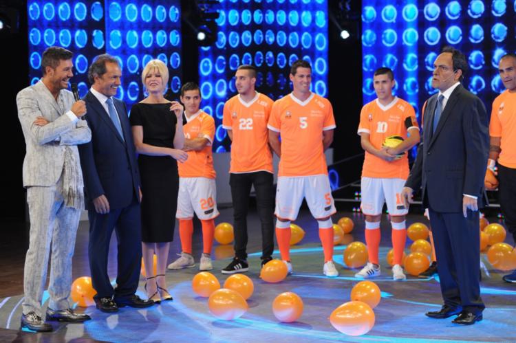 El candidato del Frente para la Victoria, el primero presentado por Tinelli, entró ganador haciéndole un guiño al directivo de San Lorenzo: “Después de 30 años (que se conocen), vos soñando presidir la AFA, y yo con presidir la Nación”, le dijo.