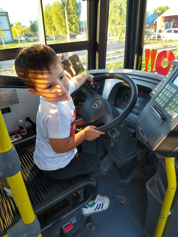 Como agregado, la empresa le permitió al pequeño subirse a una unidad en el día de la celebración y simular que era el chofer del transporte.