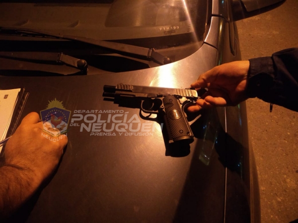 Dos hombres discutían con un arma en la mano, junto a un auto, en plena calle Huilén y 1° de Mayo. Un móvil policial que pasaba por el lugar observó la situación y detuvo la marcha. El hombre que sostenía el artefacto se sorprendió ante la presencia del personal policial y arrojó el arma dentro del vehículo. Tras inspeccionar el rodado, los efectivos encontraron una pistola detrás del asiento del conductor. El hombre fue detenido por portación de arma.