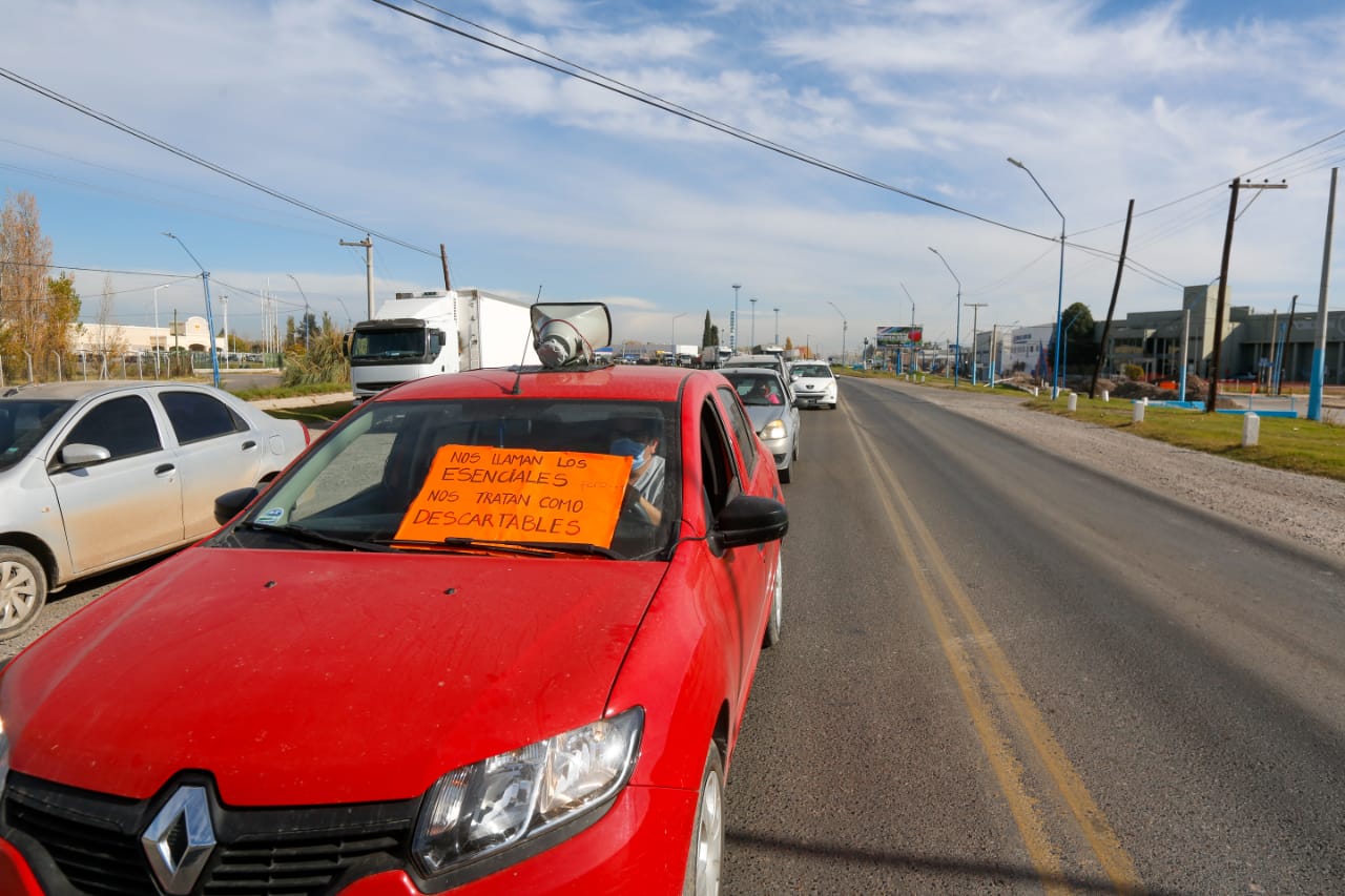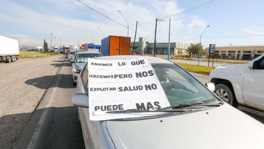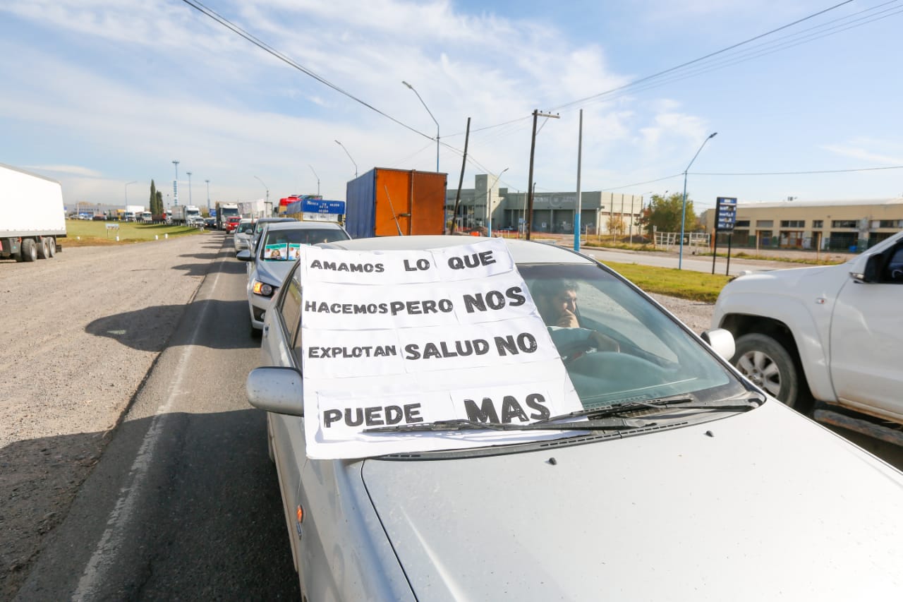 La columna de vehículos partió del hospital y así llegaron a la ruta nacional 22 donde trasladaron el reclamo a los automovilistas que transitaba por ese sector de la ciudad. Primero lo hicieron con la caravana y luego bajaron de los vehículos para caminar por esa transitada vía de comunicación.