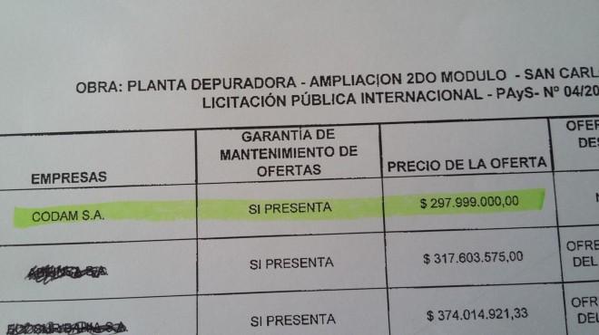 Finalmente la obra fue adjudicada a la empresa Codam S.A que ofertó realizarla por 298 millones de pesos, unos 100 millones menos que el presupuesto oficial.