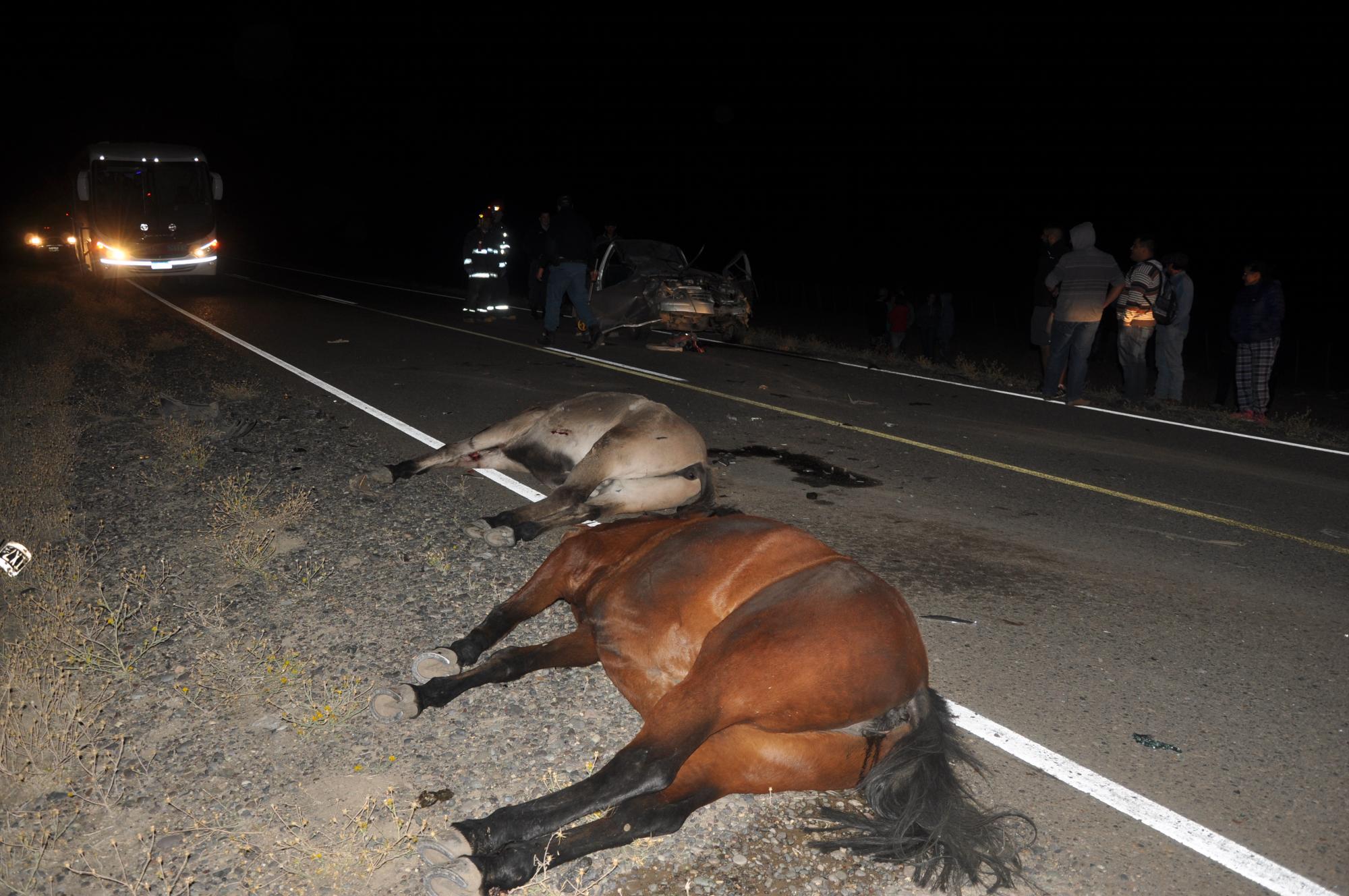 El automovilista, que fue identificado como Simón Carrasco, impactó de lleno con los equinos y el auto quedó mirando hacia Chos Malal, en sentido contrario al que circulaba.