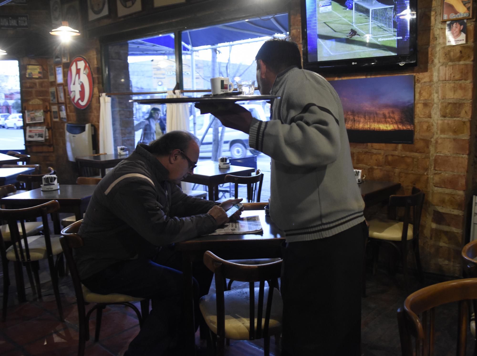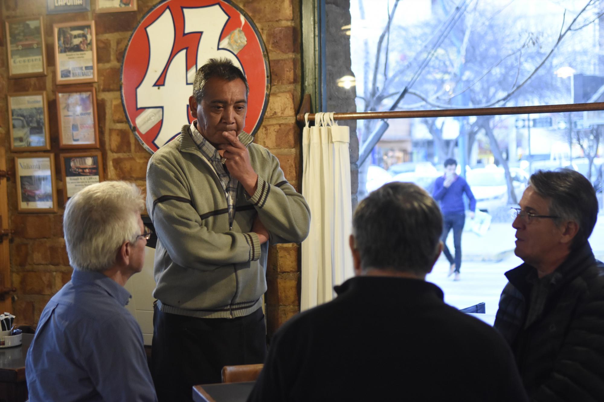 Lejos del gesto parco que solían tener aquellos cowboys, Rubén Linqueo atraviesa el piso de madera del café con una sonrisa. Oriundo de Paso Córdova, al que define como su “lugar ideal”, el histórico mozo esconde sus 46 años detrás de una actitud jovial, como si los años lo hubieran cargado más de frescura que de peso en la mochila.