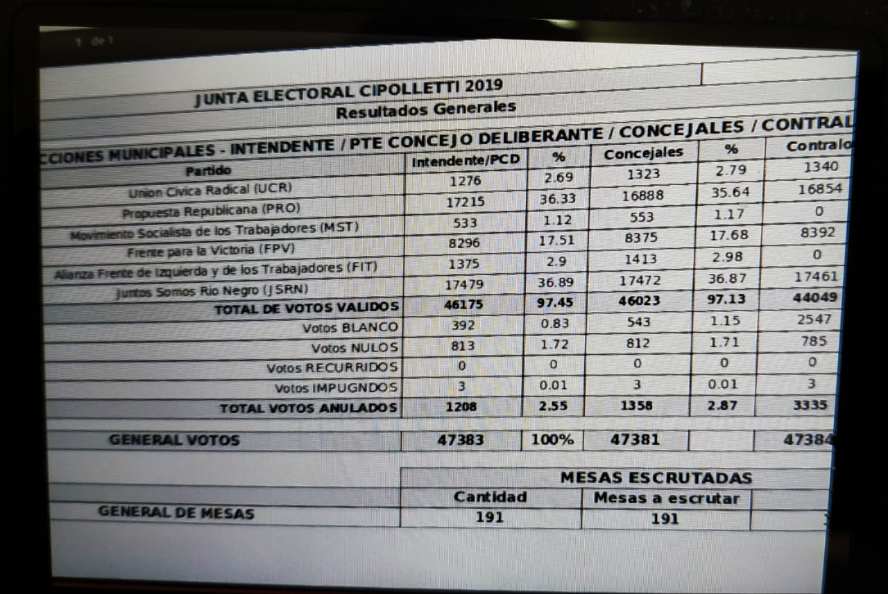Además Juntos tendrá una amplia representación en el Concejo Deliberante y ocupará la Controlaría Municipal. Así lo expresó el gobernador Alberto Weretilneck en las redes sociales al indicar que el «escrutinio definitivo ratificó el enorme y trasparente triunfo electoral de Juntos en Cipolletti».