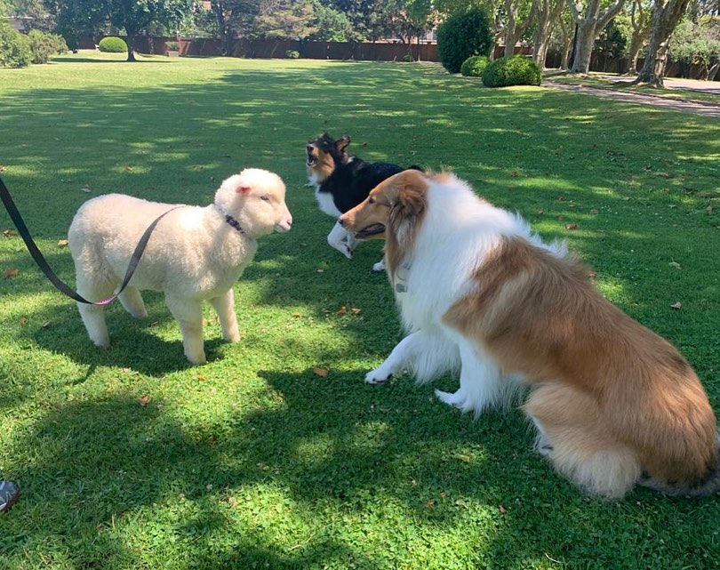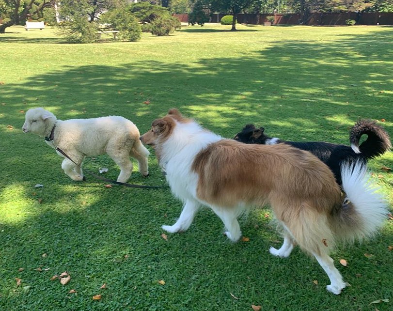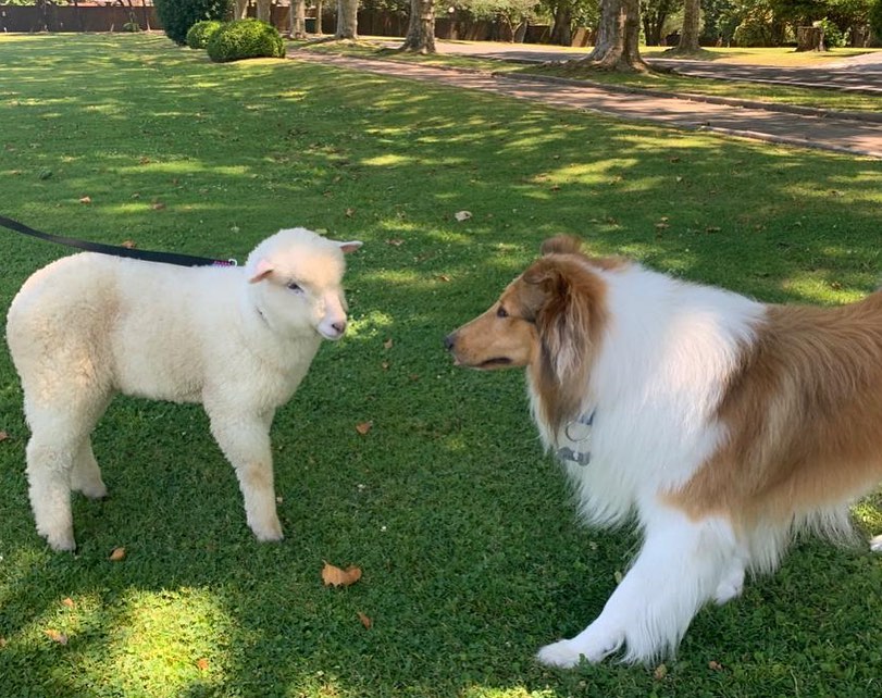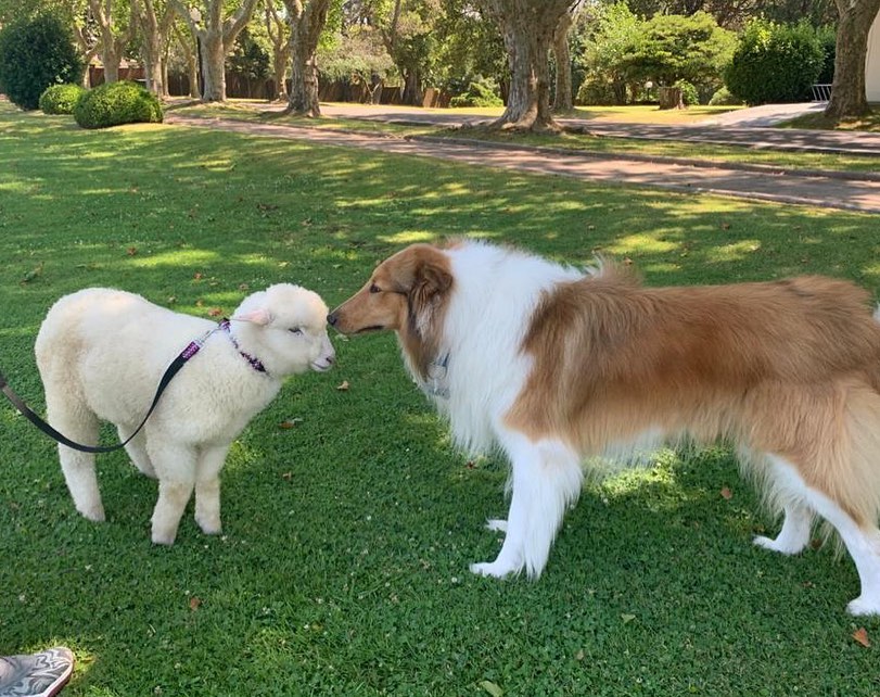 Dylan, el perro del presidente Alberto Fernández, presentó a la oveja Argentina, la nueva integrante de la familia presidencial.