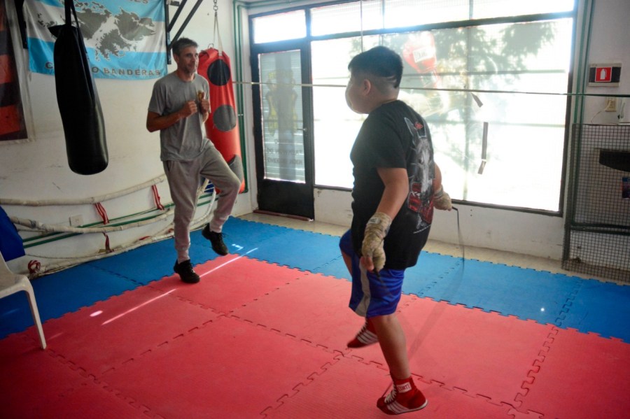 El referente también entrena a un adolescente de 12 años que realiza un guanteo asistido.