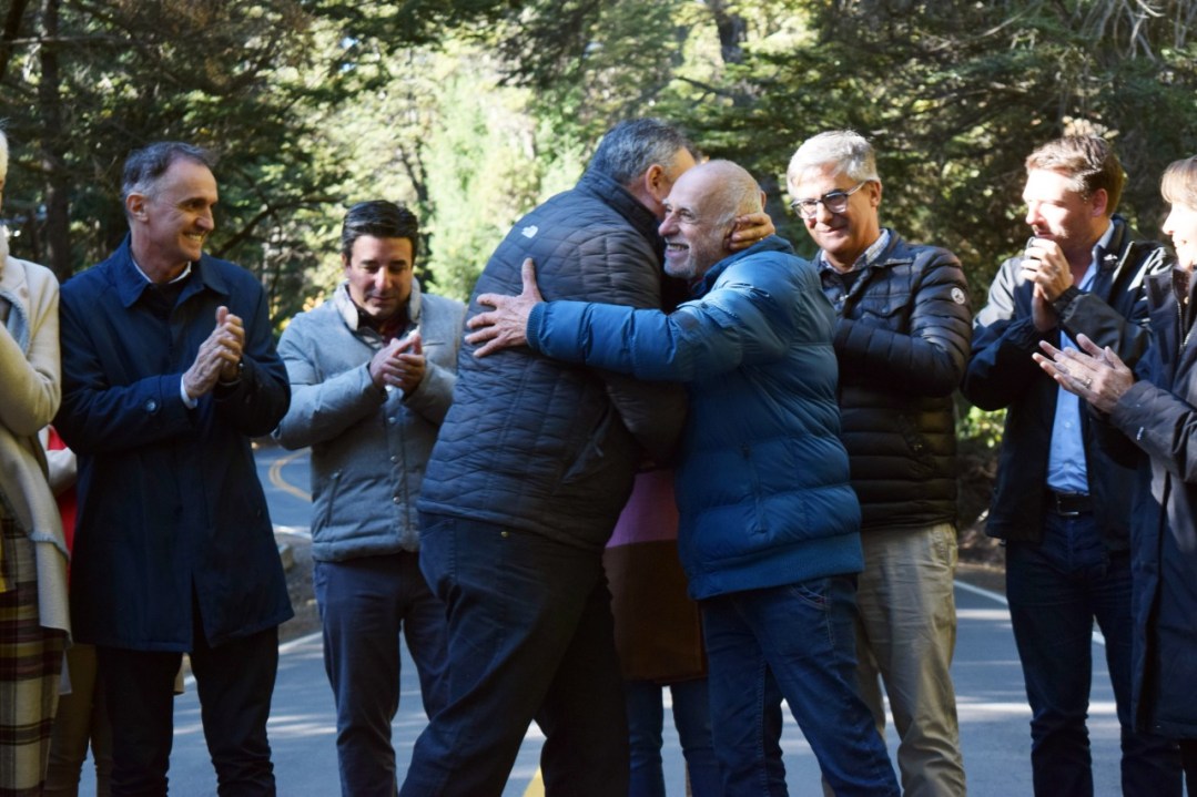Con la llegada del pavimento en el ingreso a Colonia Suiza -uno de los grandes puntos de atracción de Bariloche-, el Municipio saldó una deuda de décadas con su infraestructura, se resalta desde el Ejecutivo local. En la foto, autoridades nacionales, provinciales y locales al momento de inaugurar la obra.