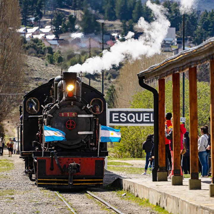 Esquel también tiene historia: el legendario tren La Trochita, con su locomotora a vapor, sigue funcionando. El recorrido desde Esquel hasta Nahuel Pan, a bordo del Viejo Expreso Patagónico, atraviesa la estepa y permite conocer la historia ferroviaria de la región. Un viaje por la historia, la identidad y la cultura local.