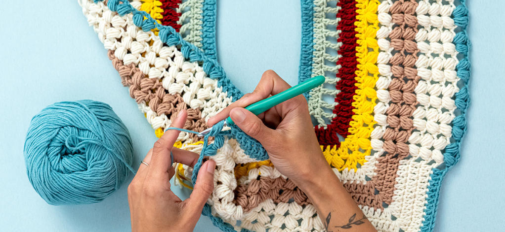 Aprenda a combinar colores y a tejer sin costuras usando diferentes puntos del crochet.