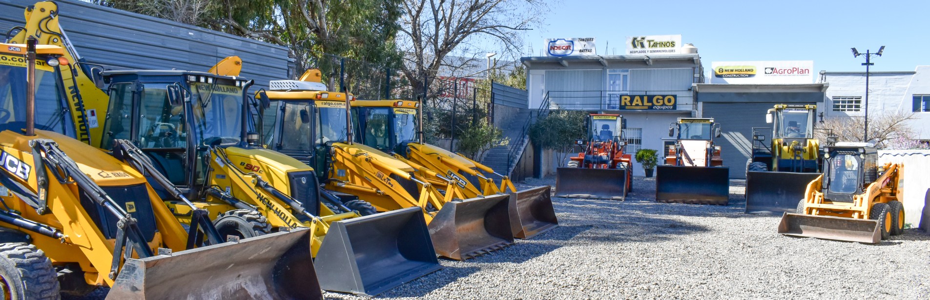 Ralgo Equipos ofrece maquinarias como acoplados, trailers, semirremolques, tanques para chasis, excavadoras, cargadoras, motoniveladoras, retroexcavadoras, camiones mineros, compactadores, tractores, entre otros equipamientos.