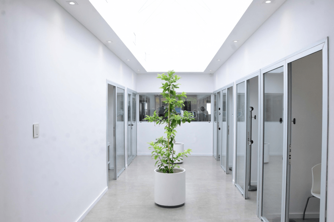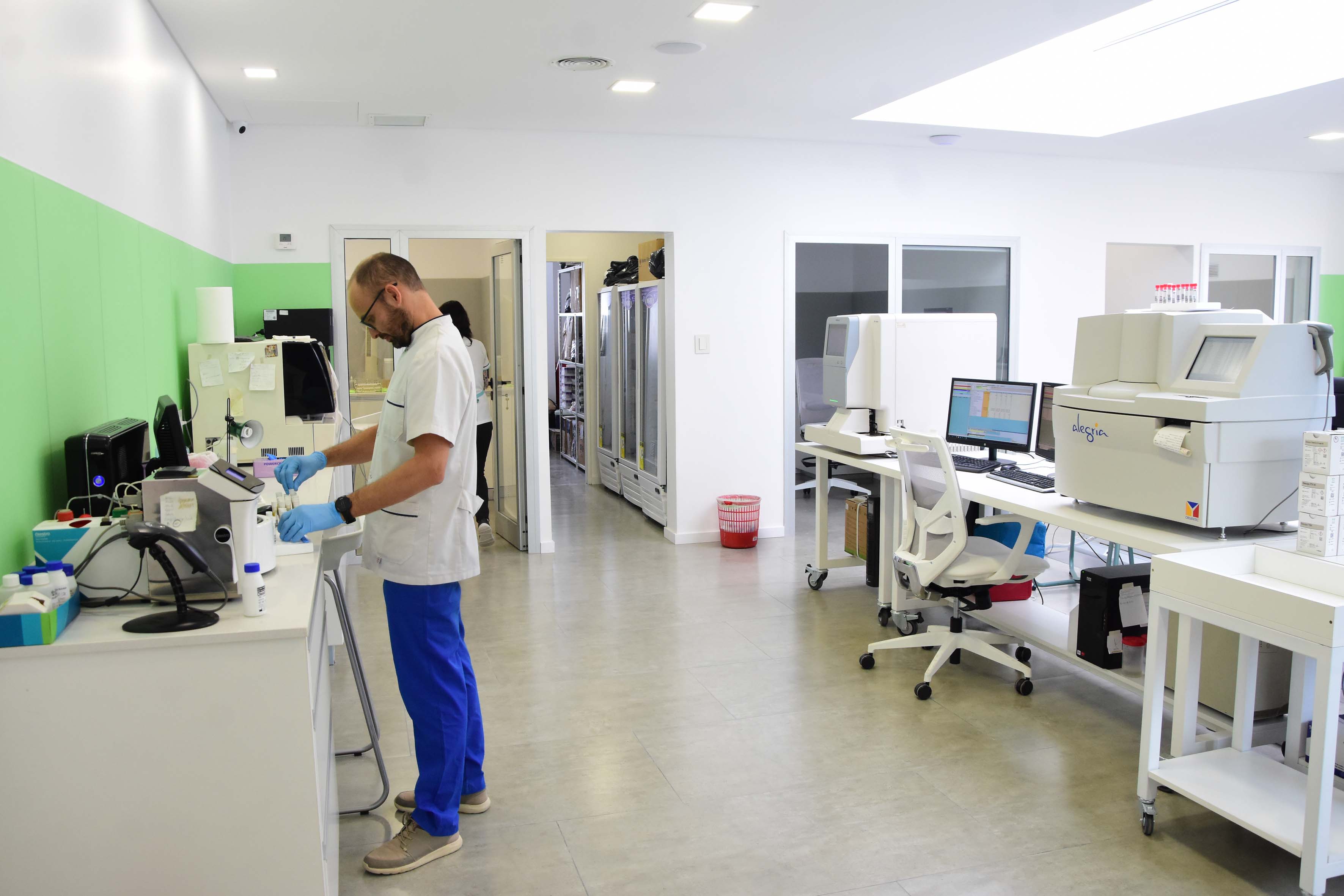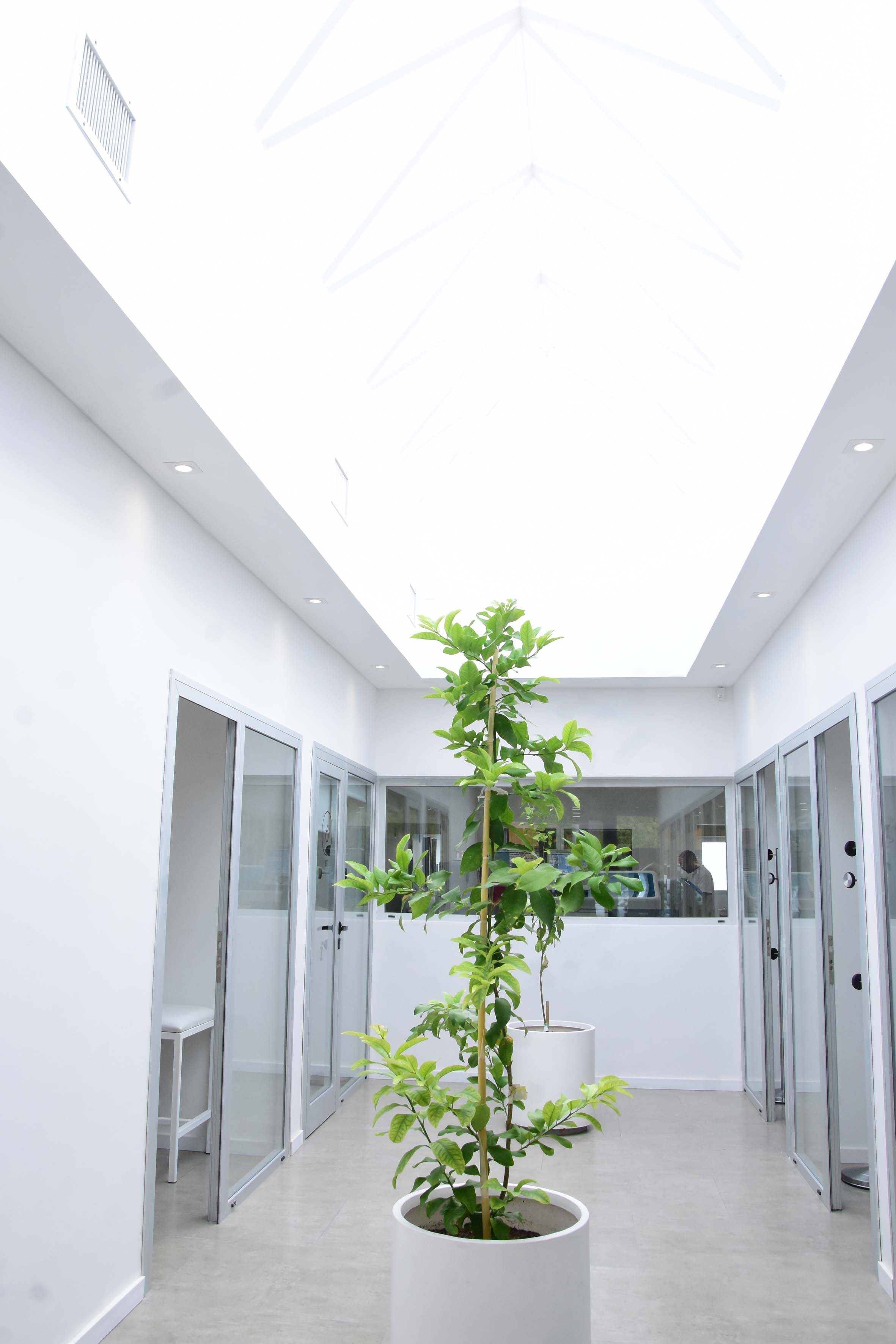 El laboratorio cuenta con un espacio muy luminoso que actúa como antesala a los espacios de extracción. La transparencia del diseño, complementada por una cubierta de vidrio y un gran ventanal que permite visualizar el laboratorio en funcionamiento, crea una sensación de apertura que elimina los misterios y secretos asociados a los procedimientos médicos.