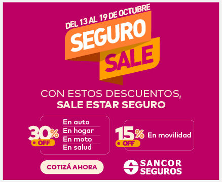 Durante siete días y bajo la denominación SANCOR SEGUROS Sale, la aseguradora ofrecerá descuentos exclusivos de hasta 30% en seguros de auto, moto, hogar, movilidad y salud, con el objetivo de acercar la protección a más personas, en un contexto en el que la prevención y la planificación financiera se vuelven cada vez más relevantes.