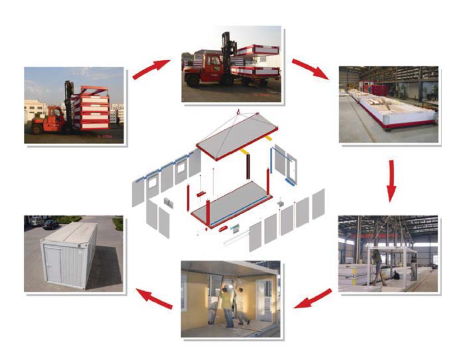– Módulos de alta gama: Edificios modulares como hoteles, hospitales, puestos sanitarios, escuelas y locales comerciales. Por ejemplo, un hotel de 200 habitaciones puede ensamblarse en el sitio en tan solo 2 semanas a partir de edificios modulares de hormigón o paneles modulares de acero para 40 o más pisos