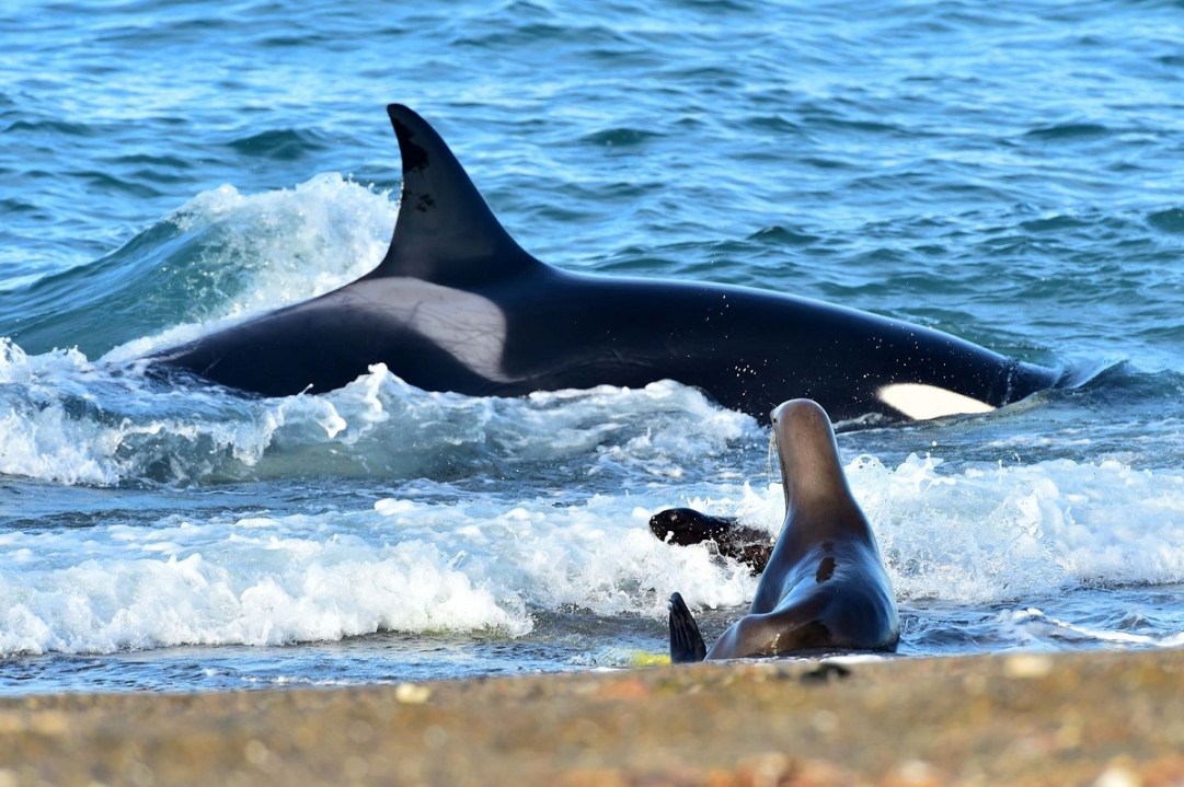 Las orcas llegan hasta la orilla para alimentarse de las crías de elefantes marinos.