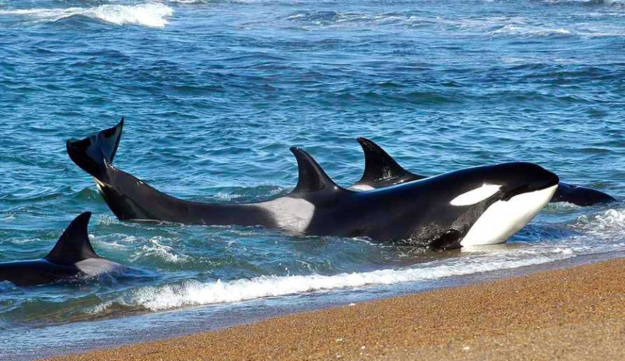Este comportamiento se llama varamiento intencional y consiste en el desplazamiento a tierra firme durante la caza de presas específicas. En la Peninsula Valdés se ha vuelto especialmente conocido debido a que allí se observa regularmente este fenómeno durante la temporada de caza de lobos marinos. Durante este período, las orcas se acercan a la costa y, en ocasiones, encallan intencionalmente para capturar lobos marinos y luego se deslizan de regreso al mar.